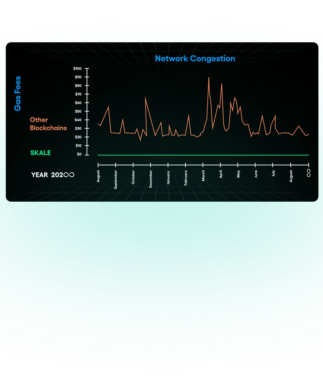 Transactions are free on SKALE. Offer unlimited free mints, onboard players within seconds, and build great experiences.